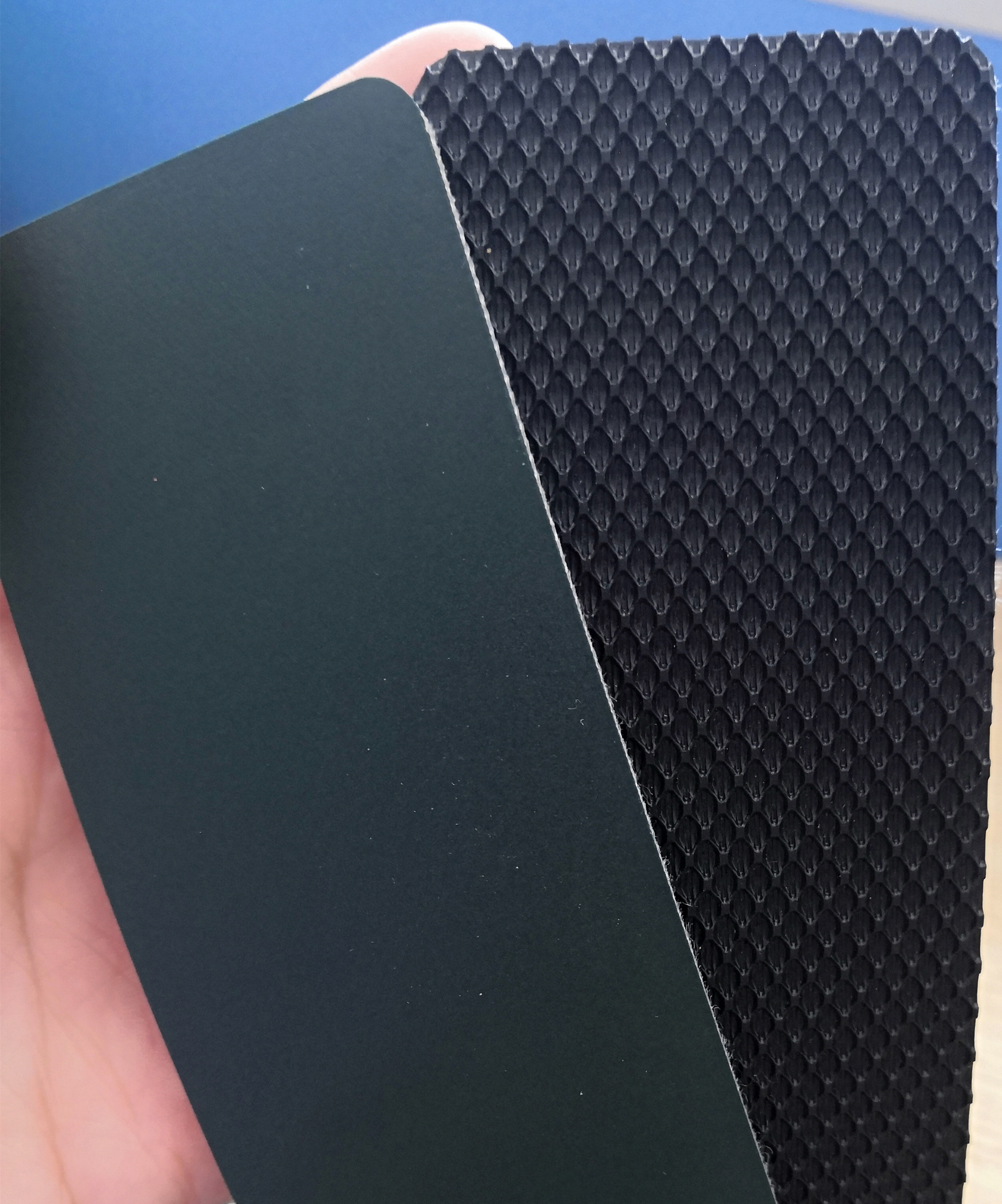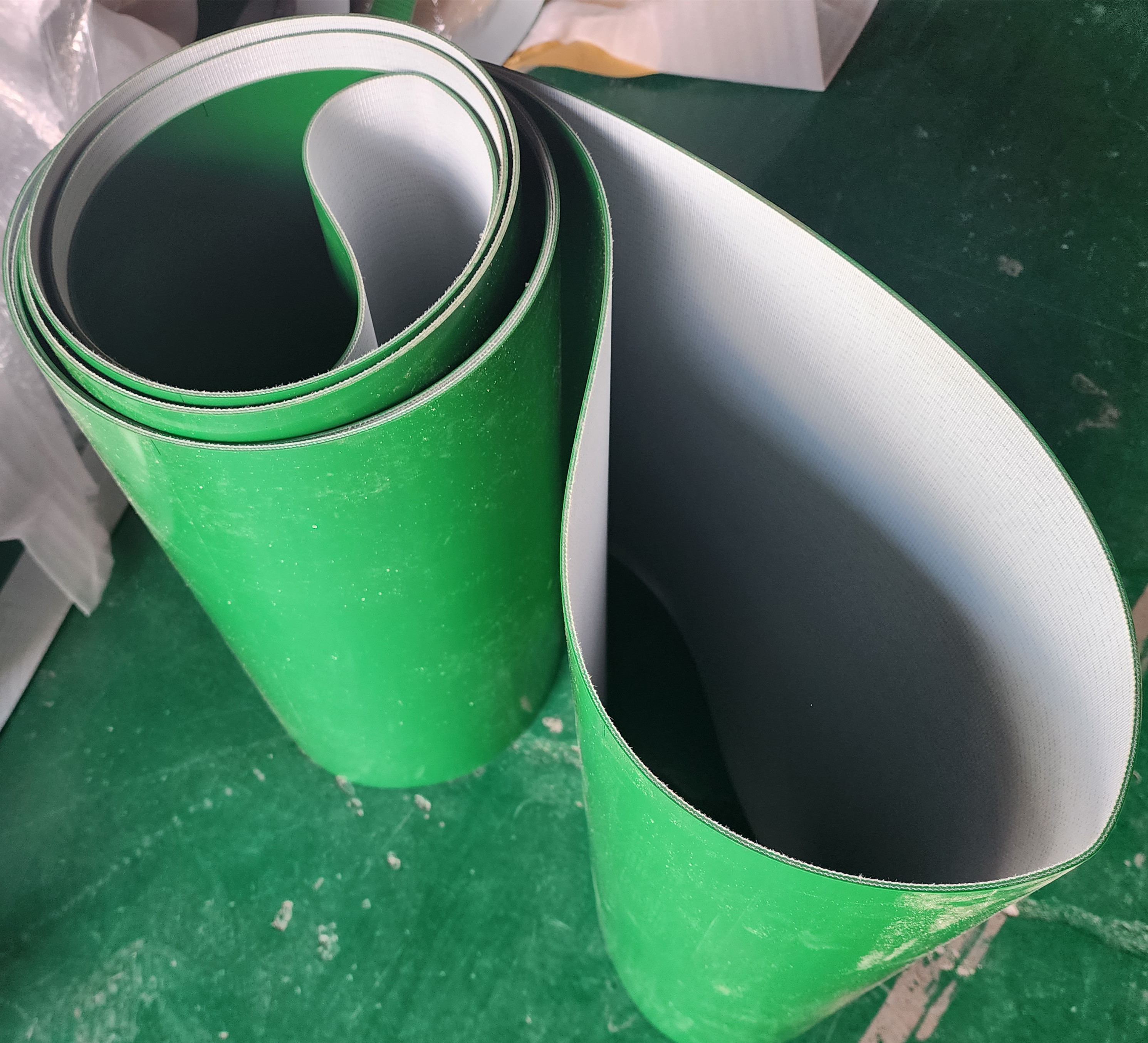 | Mettre en évidence | bande de conveyeur d'unité centrale de PVC de 3 plis,bande de conveyeur plate d'unité centrale de PVC de modèle,3 manient la bande de conveyeur habilement verte de PVC |